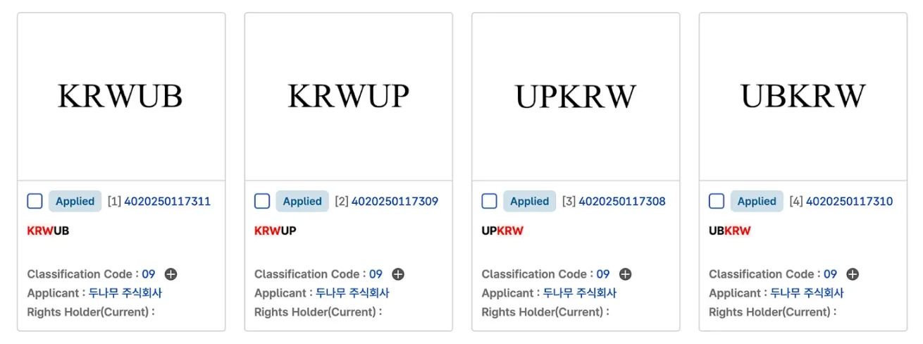 Upbit 的 KRW 稳定币商标, 来源: KIPRIS