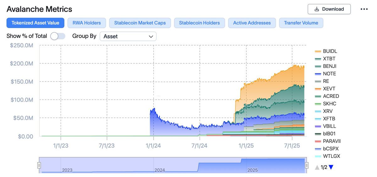 在Avalanche上代币化的RWA。来源:RWA.xyz