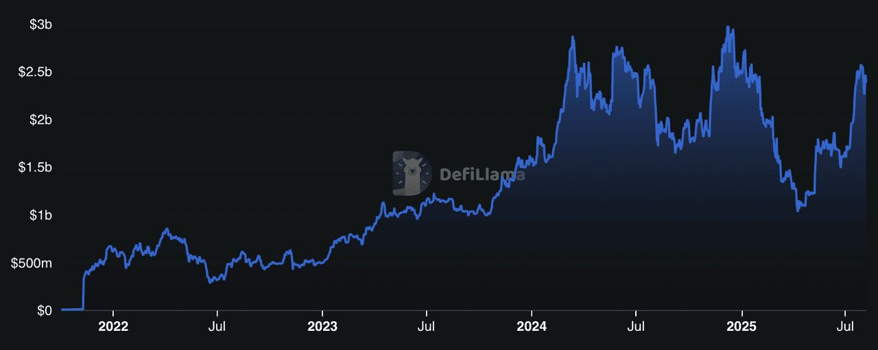 流动质押在2025年蓬勃发展,超过668.6亿美元的资金锁定于各种协议中,且流动质押代币(LSTs)的总市值达到864亿美元。在过去七天内,平台已经产生了3936万美元的手续费和286万美元的收入,反映出它们在不断增长的DeFi生态系统中的核心地位。随着像以太坊、索拉纳和Polygon这类工作量证明(PoS) 网络持续扩展,流动质押为用户提供了无需锁仓资金即可赚取奖勋的机会。相反,他们会收到凭证代币,如stETH、mSOL 或rETH,这些代币可以在DeFi策略中使用,例如借贷、交易和收益农业。