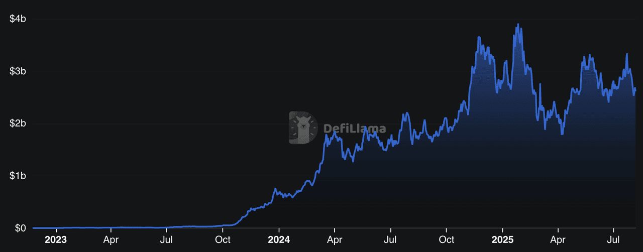 Jito是Solana 区块链上领先的流动质押协议,截至2025 年中,已质押超过1510 万SOL,约合26 亿美元的TVL。当用户通过Jito 质押SOL 时,他们会收到JitoSOL 这种流动质押代币,该代币在赚取收益的同时,仍能在Solana 的DeFi 生态系统中使用。 JitoSOL 广泛整合到像Jupiter、Meteora 和MarginFi 等平台中,成为Solana 用户偏好的担保品和交易资产。
