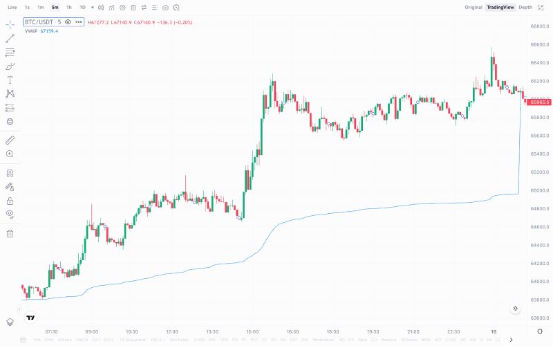 后来,物理学家Paul Levine在VWAP的基础上进行了改进,开发出了锚定成交量加权平均价格(Anchored VWAP)指标。通过这一改进,用户可以在任意时间点设置“锚点”,从该时间点起计算资产的平均价格。例如,可以将锚点设置在项目价格的某次大涨开始的时间点,然后观察到当前交易日的平均价格。这种灵活的时间框架,让锚定成交量加权平均价格(Anchored VWAP)成为分析市场趋势的重要工具。目前,锚定成交量加权平均价格(Anchored VWAP)已经广泛应用于Web3领域,为市场分析增添了更多可能性。