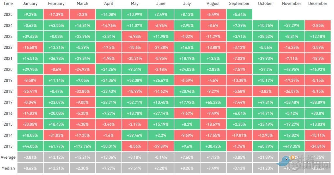 换言之,投资者正在重新拥抱“货币贬值交易”(Debasement Trade)——面对财政赤字、通胀与地缘风险,他们将资金投入黄金与比特币等稀缺资产。如果历史规律延续,十月行情往往是全年最具延续性的上涨窗口。随着供给侧压力缓解、资金回流与政策拐点叠加,比特币或正蓄势冲击16万至20万美元的新目标区间。
