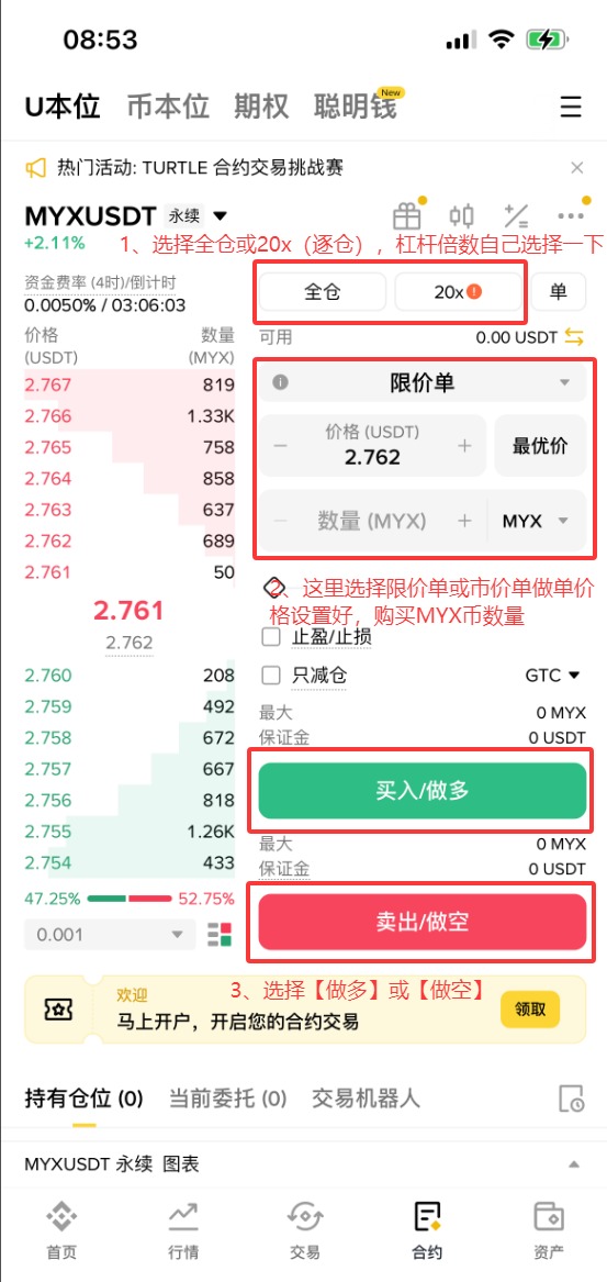 下文是最新MYX币合约购买流程: