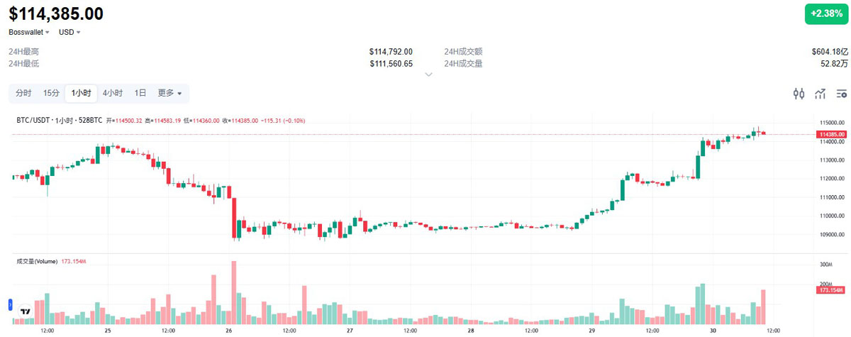 作为加密货币市场的 “定海神针”,比特币凭借在市值、流动性与市场共识层面的绝对优势,始终牢牢占据着主导地位,市值占比稳定维持在 57.16% 的高位。尽管加密市场整体热度高涨,但比特币近期表现却相对克制,始终在 11.2 万至 11.4 万美元区间内震荡整理,展现出头部资产特有的稳健性。