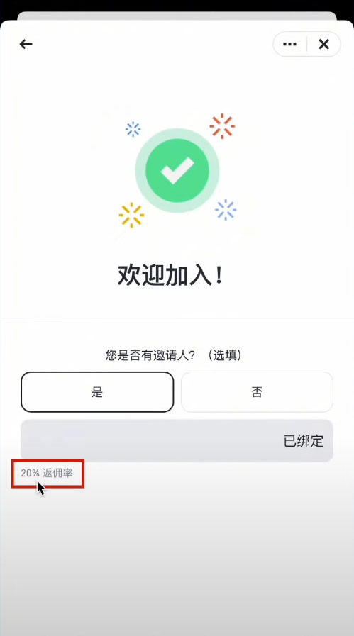 注册就完成了,你会看到这个页面,告诉你获得了20%的返佣率