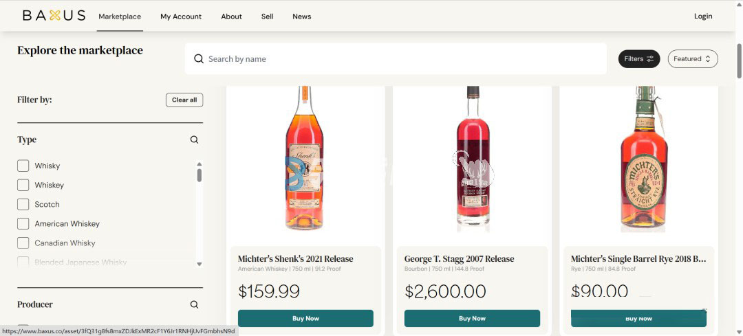 BAXUSBAXUS 将高端酒(如稀有威士忌、葡萄酒)存储在安全的温控库中,每瓶酒通过区块链技术生成一个独特的 NFT,作为数字化所有权证书,记录瓶子的来源、认证和交易历史。同时提供一个类似 OpenSea 的市场,允许用户直接交易稀有酒类,支持 USDC 和信用卡等传统支付方式。