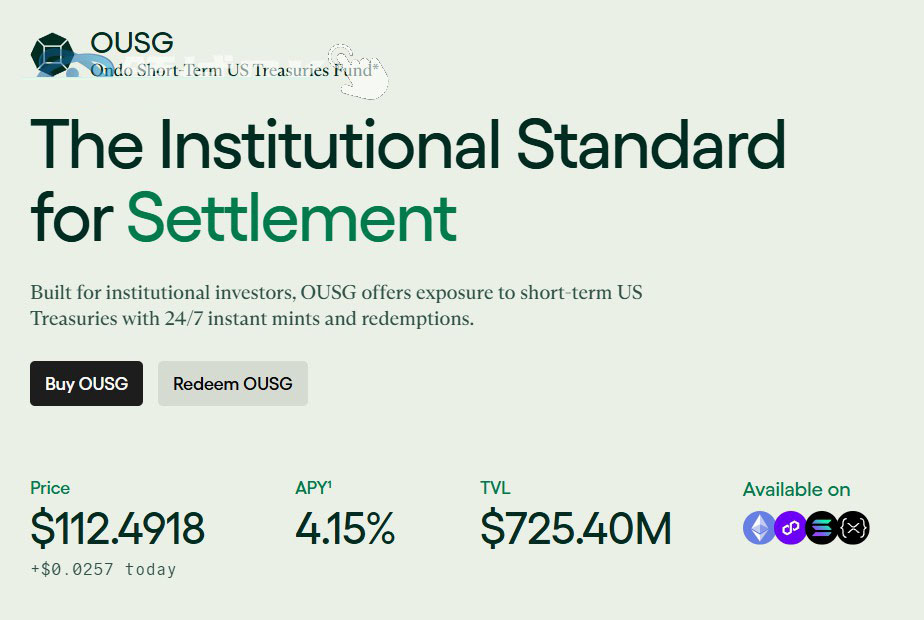 Ondo Finance(USDY&OUSG)目前 Ondo Finance 已成为 RWA 赛道的龙头,其旗舰产品 USDY(Ondo USD Yield)和短期国债代币化资产 OUSG,是 Solana 生态中最具代表性的 RWA 产品,凭借高透明度、高流动性和稳定收益率,吸引了大量投资者。