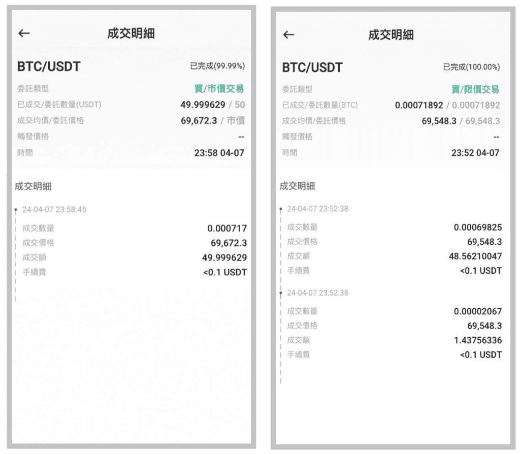 | BTC 现货交易手续费(实测) | 交易订单未显示具体手续费,咨询客服中 |