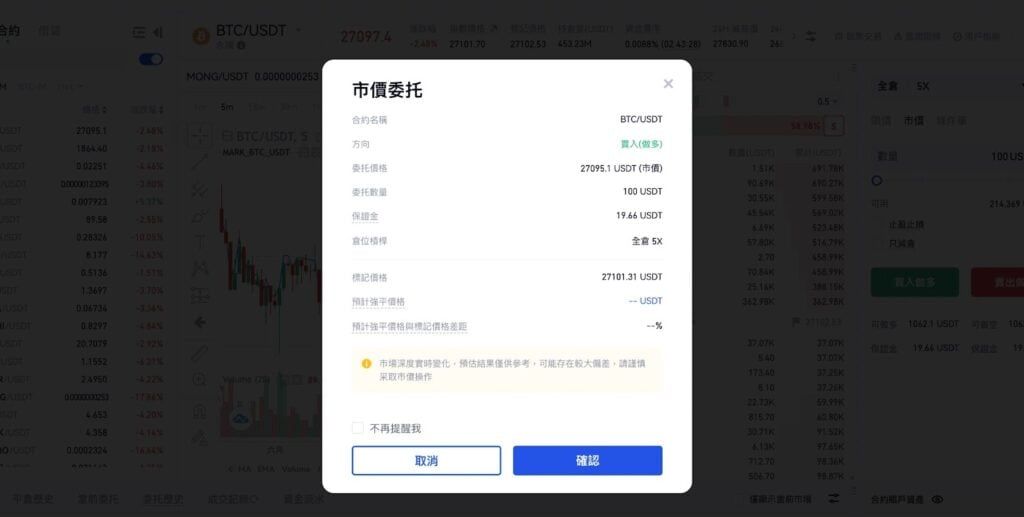 | 合约买入BTC 滑价 | 市价单:0 限价单:0 |